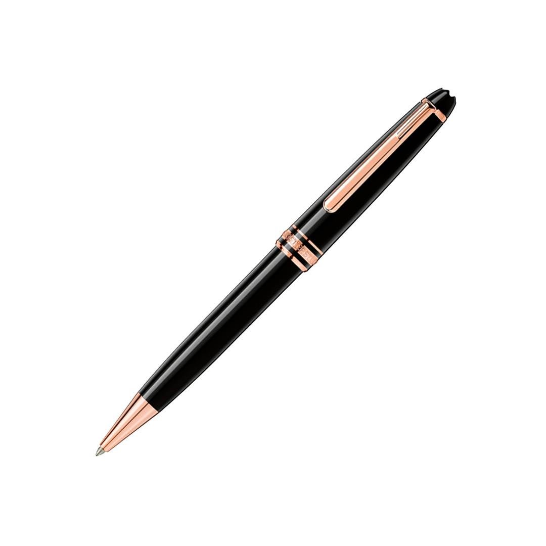 Instrumento de escrita Montblanc Meisterstück Classique, com sistema de escrita esferográfica. Confeccionado em resina preciosa preta, acabamentos brilhantes revestidos em ouro rosa e o emblema da estrela branca coroa a estética refinada e clipe revestido em ouro rosa com número de série individual.Os instrumentos de escrita Montblanc endossam a busca da marca suíça pela técnica artesanal e pela perfeição. Durante 100 anos elas permaneceram fieis ao seu caráter inconfundivelmente atemporal e sofisticado. Suas firmes exigências quanto a formato, estilo, materiais e execução estão refletidas em todos os seus produtos. Para criar a perfeita maestria artesanal, seus artesãos unem o design nobre às proporções harmoniosas, colocando paixão e alma em cada peça desenvolvida, criando peças que são verdadeiras obras de dedicação e arte.