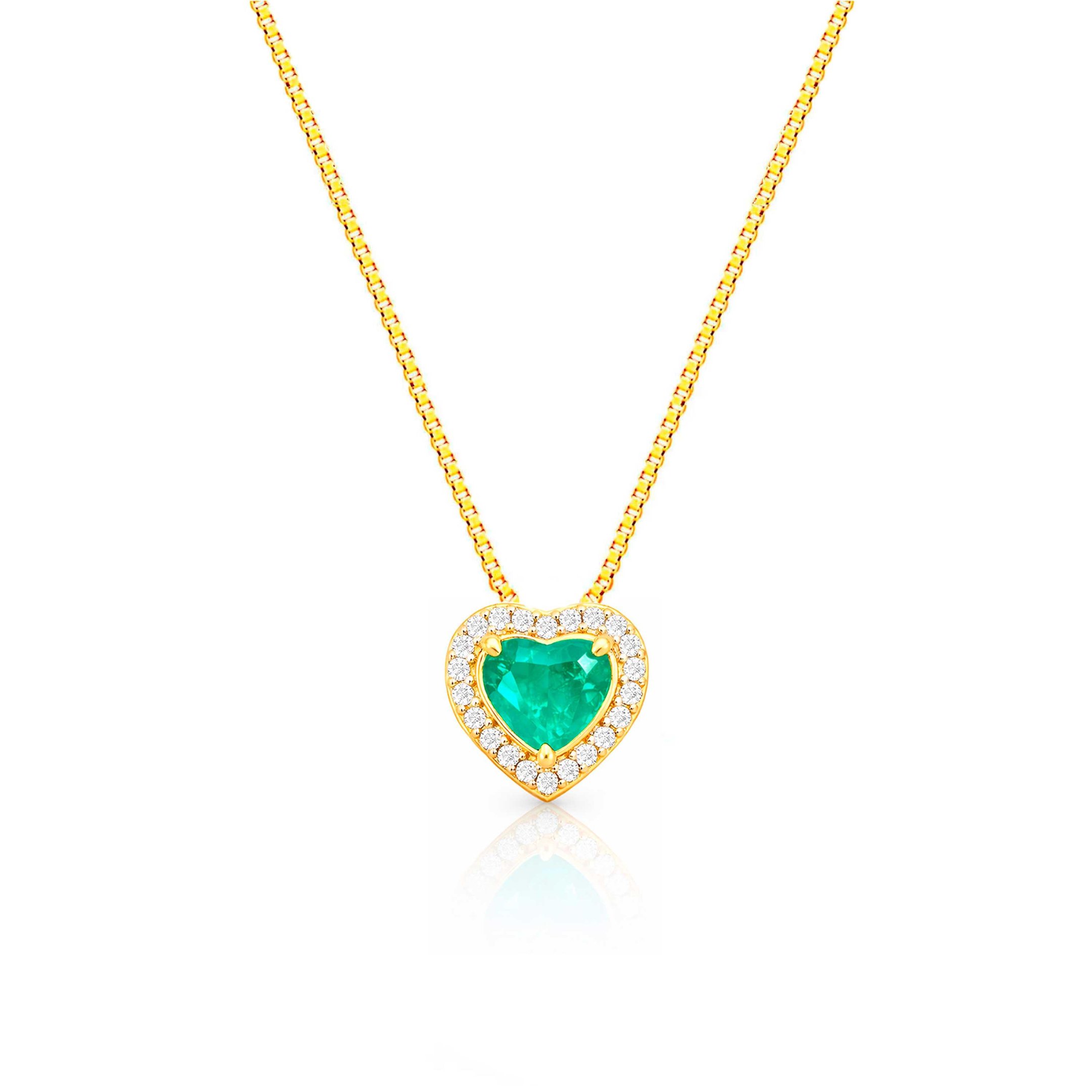 O seu tamanho não diminui o brilho e presença da gargantilha coração de esmeralda, em ouro amarelo, diamantes deixam a peça ainda mais encantadora, perfeita para as mulheres românticas.Dados técnicos: