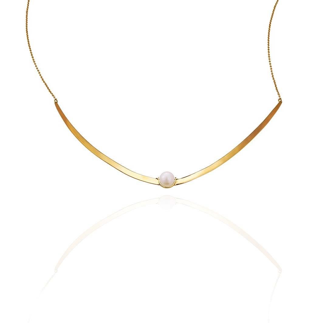 A gargantilha meia lua em ouro amarelo e pérola tem um ar moderno e contemporâneo, a opção ideal para as mulheres elegantes.Dados técnicos: