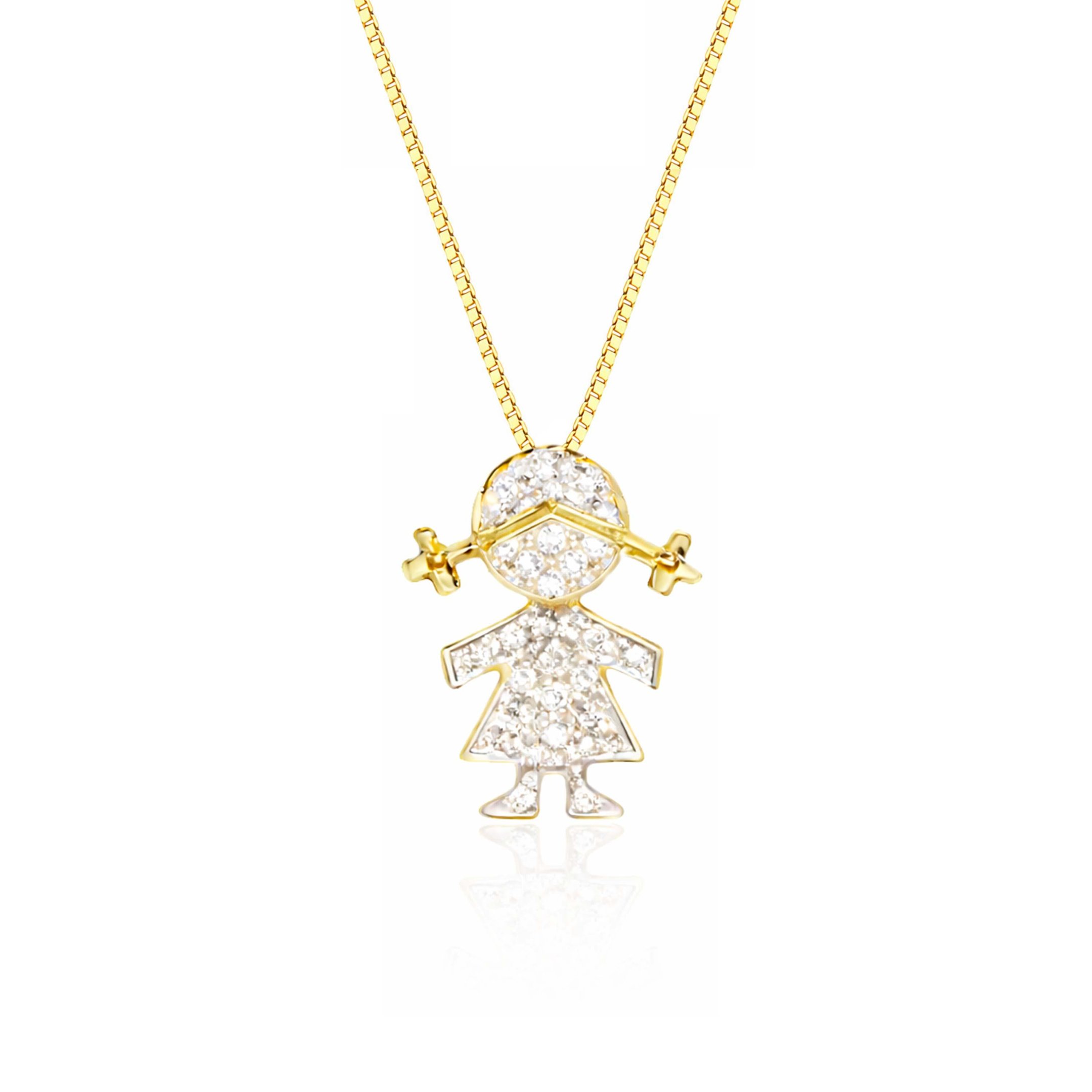 O pingente Menina Diamond no tamanho médio é uma joias delicada e vistosa, para carregar no peito o maior amor do mundo. Diamantes e ouro amarelo 18k, charmoso e um clássico atemporal, o brilho dos diamantes deixa a peça ainda mais especial. Perfeito para você ou para presentear quem você ama.Dados técnicos: