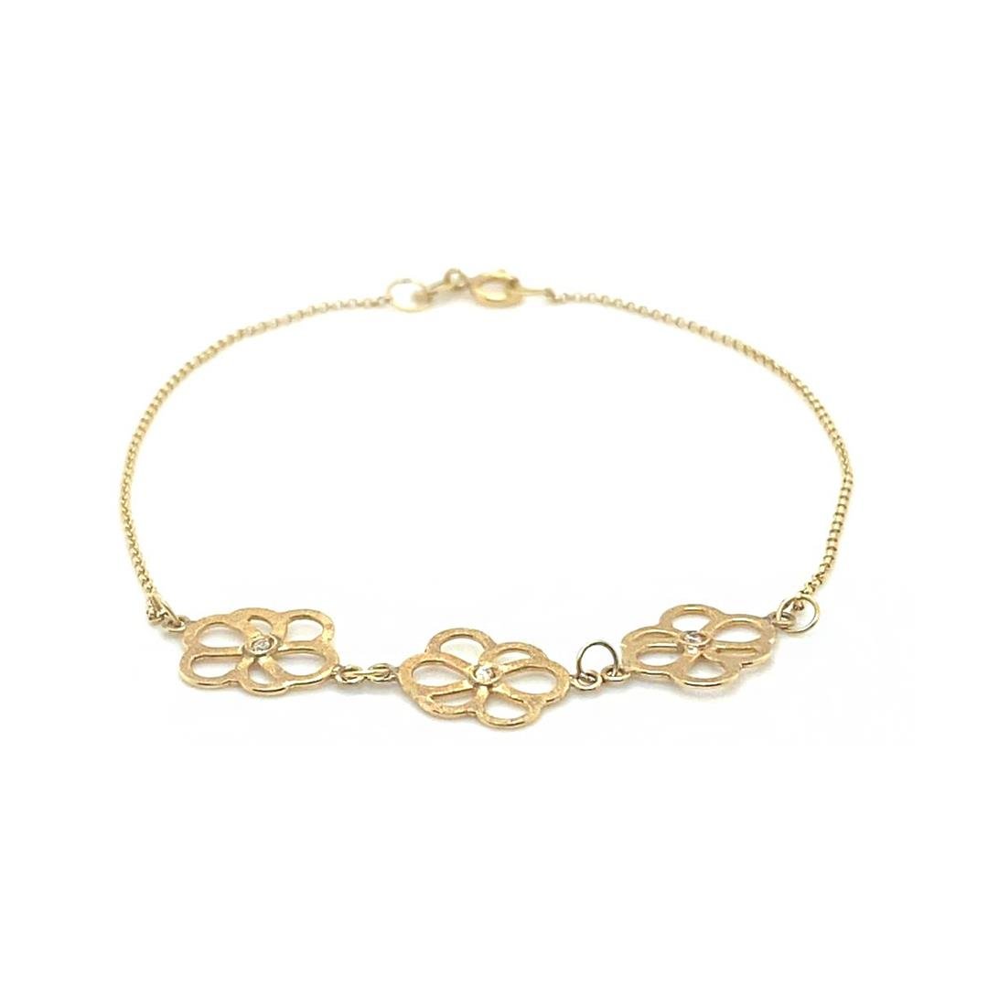 A pulseira flor tem essência leve e meiga em ouro amarelo e diamantes é um modelo para quem ama peças delicadas uma peça linda para usar muito.Dados técnicos: